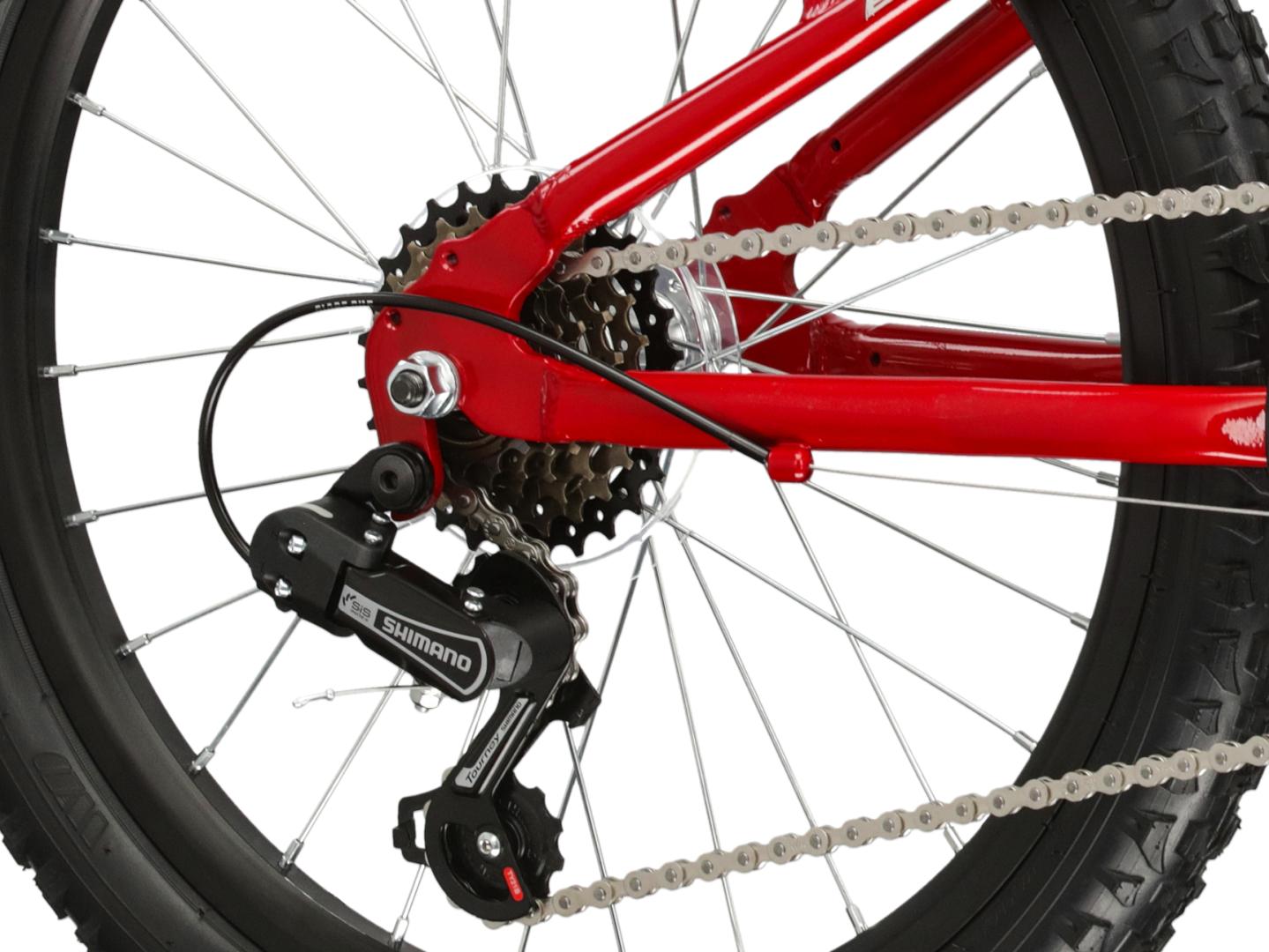 Rower KROSS Berg Mini został wyposażony w napęd w systemie 1x6. Umożliwi to sprawne pokonywanie podjazdów oraz szybką jazdę po płaskich odcinkach. Tylna przerzutka od Shimano to trwała i sprawdzona konstrukcja, która zapewnia płynną zmianę przełożeń.
