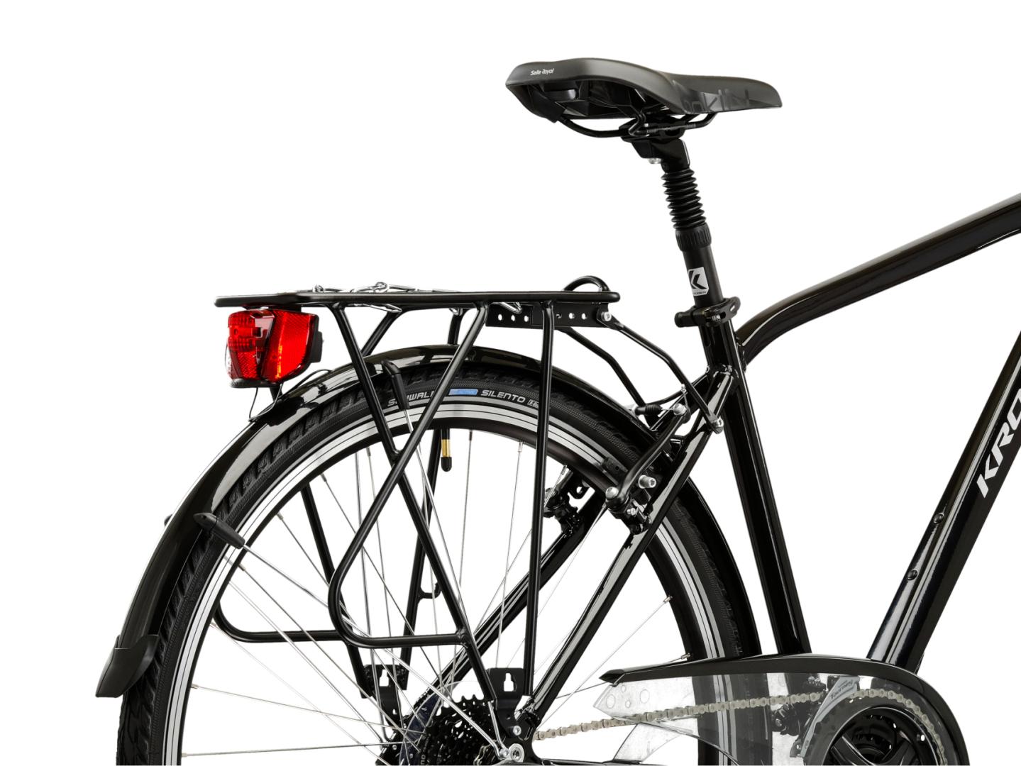 W rowerze trekkingowym nie mogło zabraknąć solidnego i stabilnego bagażnika. Umożliwia on przewożenie niezbędnego ekwipunku, a także nie będzie problemem montaż na nim dodatkowych sakw. Do kompletu trafił również system pełnych błotników, który zapewnia doskonałą ochronę przed błotem.