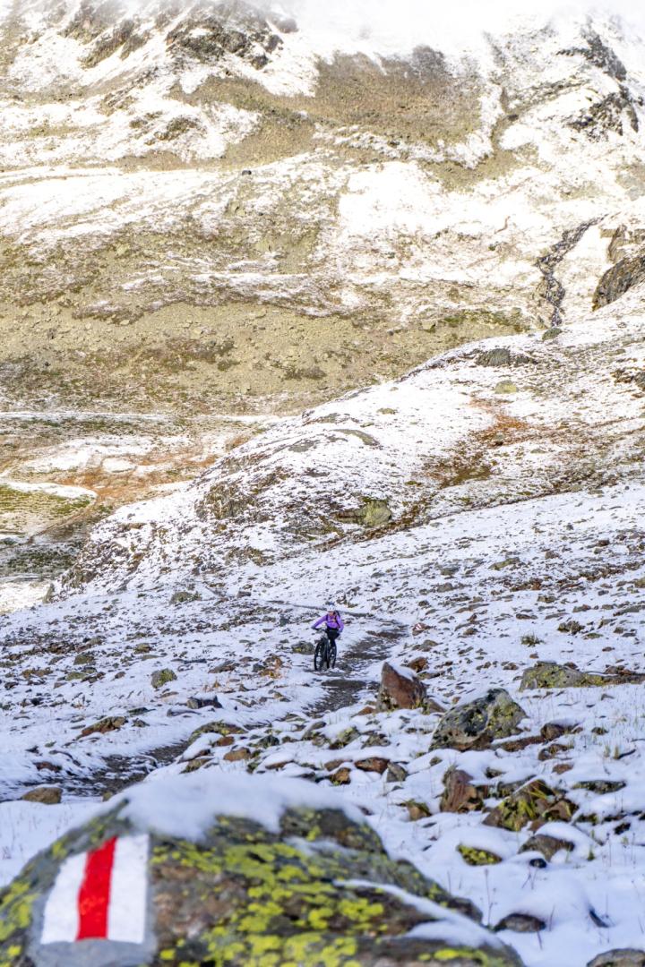Wybraliśmy klasyczną trasę pioniera TransAlp – Andiego Hackmaiera, czyli prawdziwy górski test kondycji, sprzętu i charakteru. Najbardziej zapamiętaliśmy dzień, w którym na początku września zastała nas śnieżyca — a przed nami wciąż był podjazd na przełęcz na wysokości ponad 2600 m n.p.m. Mimo trudnych warunków udało nam się dotrzeć na sam szczyt bez większej konieczności pchania — to niesamowite, jak wiele można osiągnąć dzięki e-bike’om, nie tracąc przy tym poczucia prawdziwej przygody.