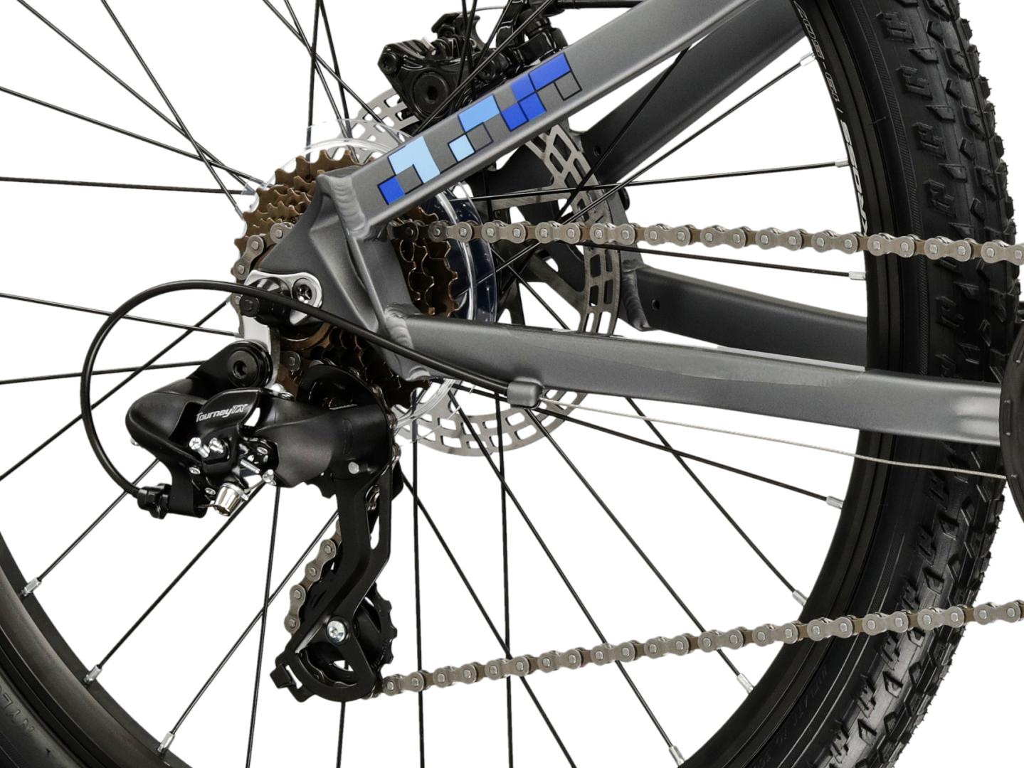 Rower KROSS Dust JR 1.0 został wyposażony w napęd w systemie 1x8. Umożliwi to sprawne pokonywanie podjazdów oraz szybką jazdę po płaskich odcinkach. Tylna przerzutka od Shimano to trwała i sprawdzona konstrukcja, która zapewnia płynną zmianę przełożeń.