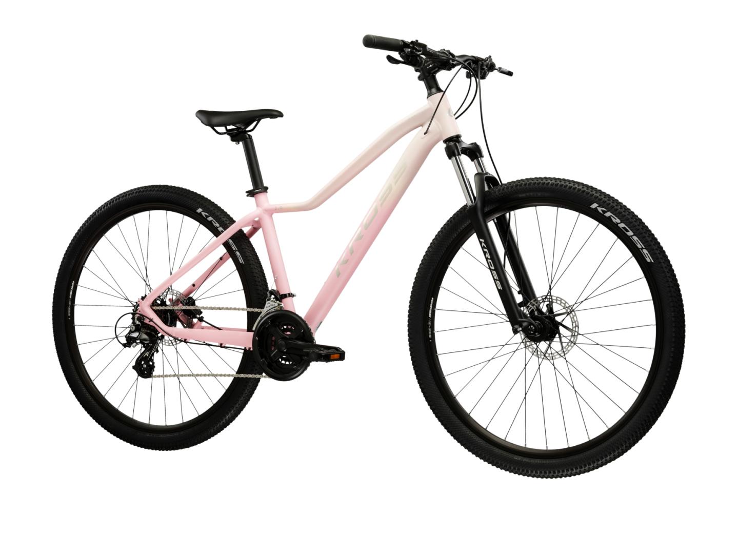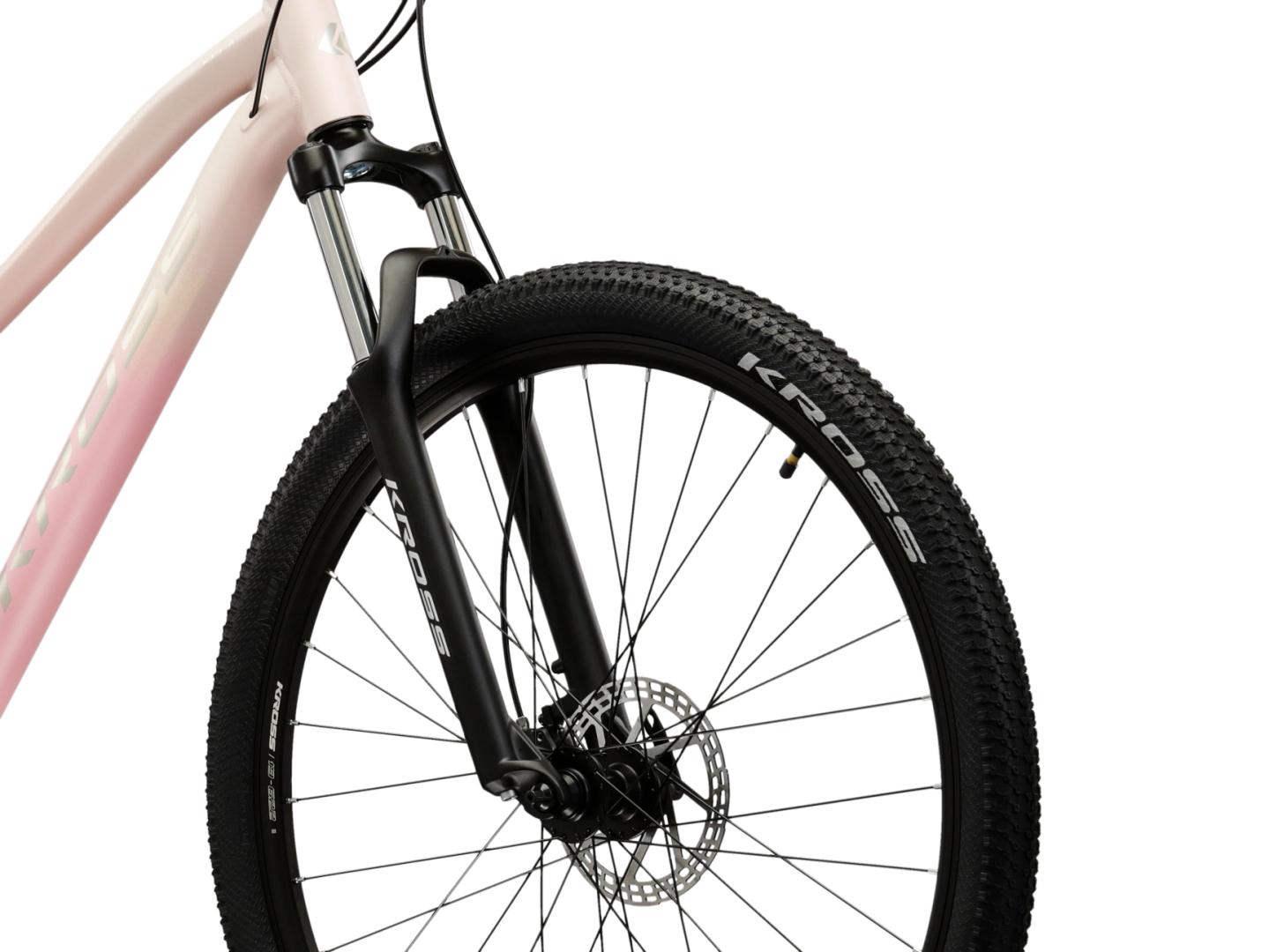 KROSS Ella 3.0 to rower MTB zaprojektowany z myślą o kobietach, które szukają roweru do użytkowania na co dzień, zarówno na dojazy do pracy czy szkoły, ale także na wycieczki do lasu. Aluminiowa rama jest lekka i wytrzymała, a amortyzowany widelec gwarantuje komfort, nawet na bardziej wymagających szlakach. Napęd Shimano w systemie 3x7 zapewnia łatwą i precyzyjną zmianę biegów, a hydrauliczne hamulce tarczowe dają pełną kontrolę nad prędkością. KROSS Ella 3.0 to idealny wybór dla aktywnych kobiet, które cenią sobie wygodę, kontrolę i wszechstronność niezależnie od wybranej trasy.