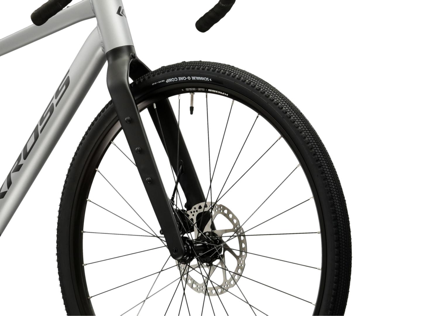 Nowa aluminiowa rama GEN2 posiada szeroki pakiet otworów montażowych do torebek, bagażnika, błotników, koszyków na bidony. Pojawiło się także dedykowane miejsce na montaż podpórki. Zaprojektowany w Kross lekki i sztywny karbonowy widelec posiada wewnętrzne prowadzenie przewodu hamulcowego, do tego może być stosowany zamiennie z gravelowymi amortyzatorami o skoku 30 mm.