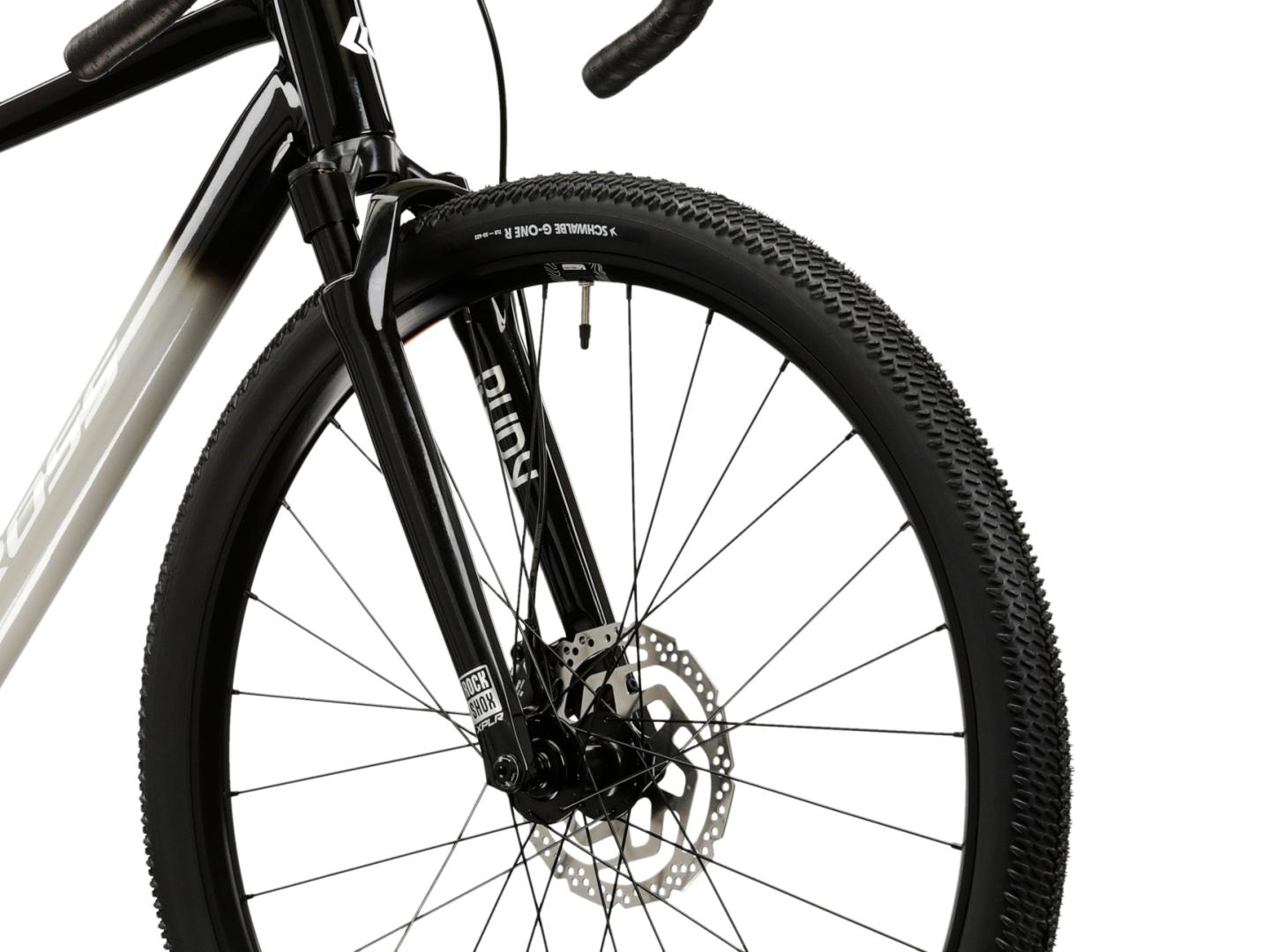 Nowa aluminiowa rama GEN2 posiada szeroki pakiet otworów montażowych do torebek, bagażnika, błotników, koszyków na bidony. Pojawiło się także dedykowane miejsce na montaż podpórki. Zaprojektowany w Kross lekki i sztywny karbonowy widelec posiada wewnętrzne prowadzenie przewodu hamulcowego, do tego może być stosowany zamiennie z gravelowymi amortyzatorami o skoku 30 mm.