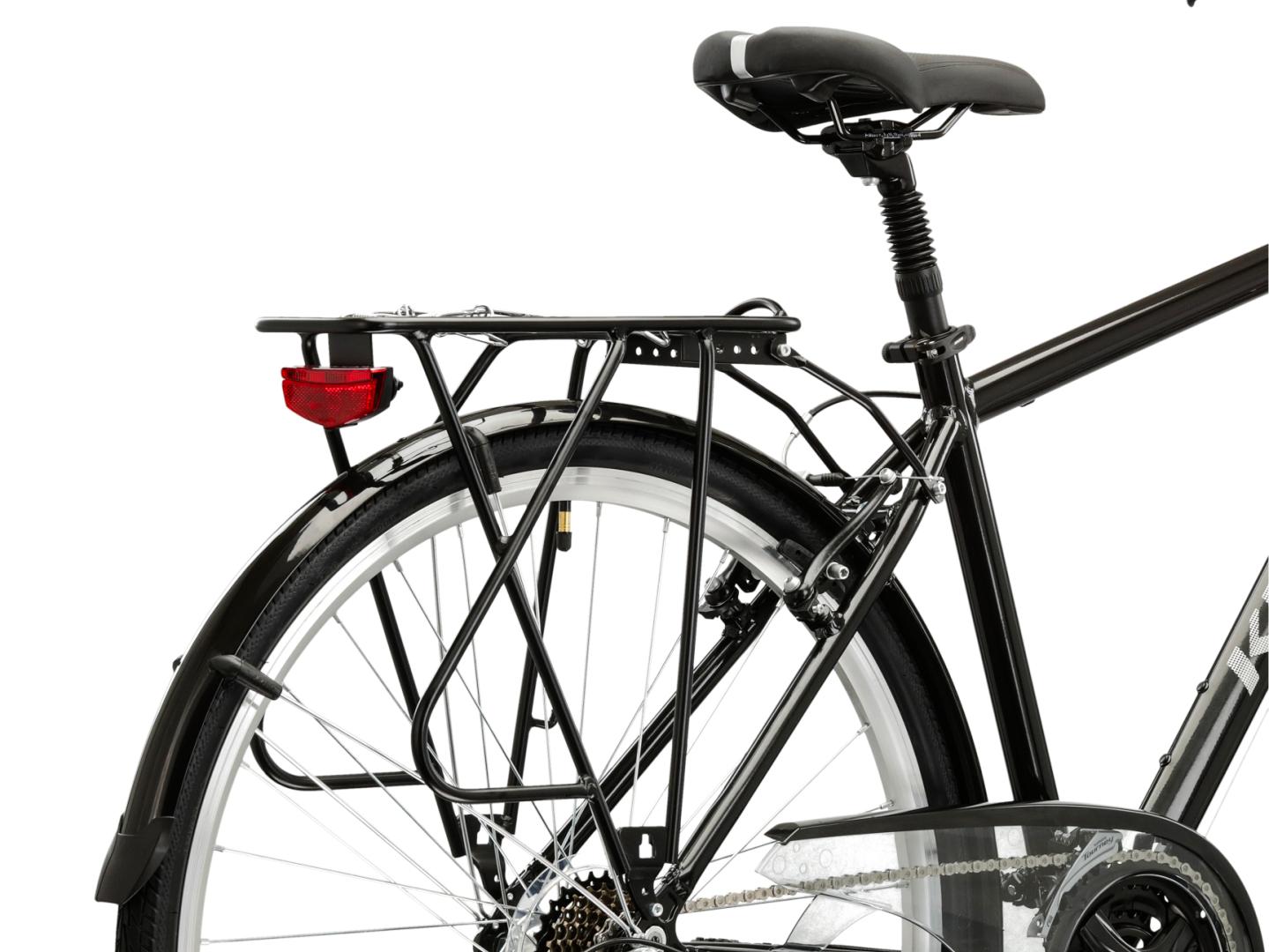 W rowerze trekkingowym nie mogło zabraknąć solidnego i stabilnego bagażnika. Umożliwia on przewożenie niezbędnego ekwipunku, a także nie będzie problemem montaż na nim dodatkowych sakw. Do kompletu trafił również system pełnych błotników, który zapewnia doskonałą ochronę przed błotem.