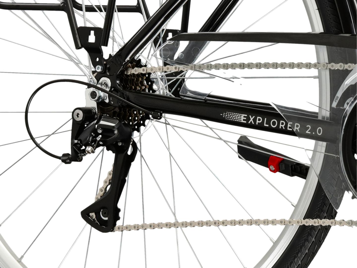KROSS Explorer 2.0 to rower turystyczny łączący cechy przydatne podczas rekreacyjnych wypraw, jak i codziennego zastosowania. Lekka, aluminiowa rama oraz amortyzowany widelec zapewniają komfort jazdy zarówno po asfalcie, jak i w trudniejszym terenie. Napęd z przerzutką Shimano w systemie 3x7 umożliwia płynne dostosowanie przełożeń do każdej trasy, a hamulce v-brake gwarantują bezpieczeństwo i kontrolę. KROSS Explorer 2.0 został zaprojektowany, aby zapewnić jak największy poziom komfortu zarówno podczas wypraw za miasto, jak i podczas dojazdów do pracy.