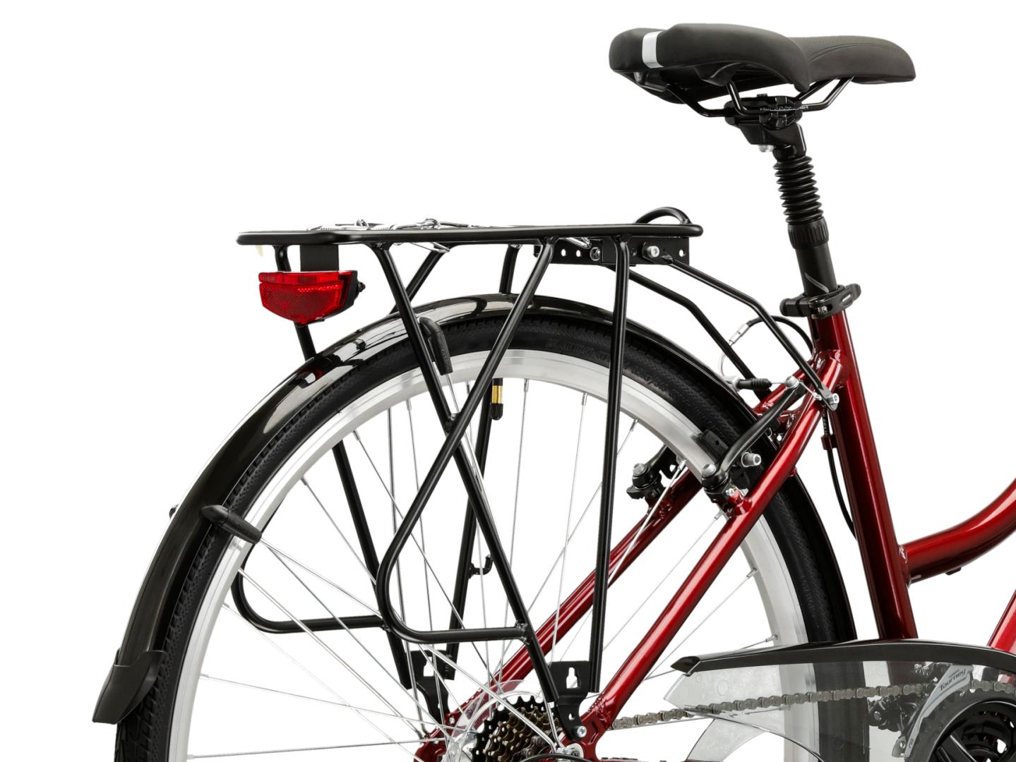 W rowerze trekkingowym nie mogło zabraknąć solidnego i stabilnego bagażnika. Umożliwia on przewożenie niezbędnego ekwipunku, a także nie będzie problemem montaż na nim dodatkowych sakw. Do kompletu trafił również system pełnych błotników, który zapewnia doskonałą ochronę przed błotem.