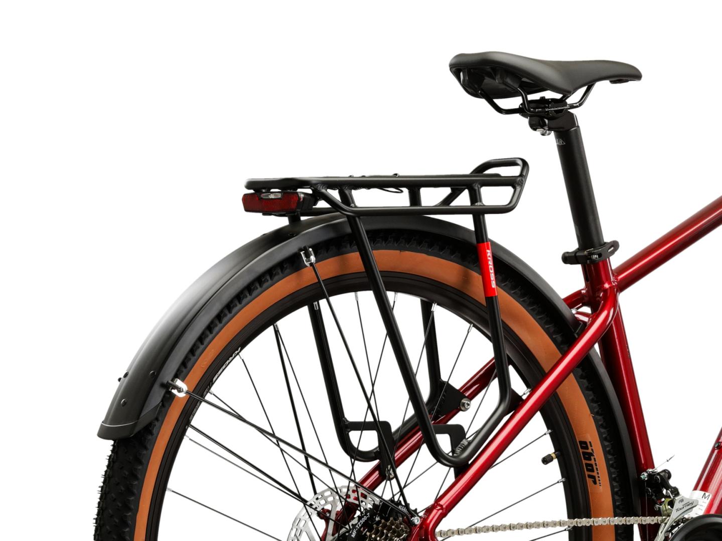 Wersja EQ(equipped) naszego roweru KROSS Hexagon X200 została dodatkowo wyposażona w przydatne akcesoria. Zintegrowane z rowerem oświetlenie ułatwi jazdę po zmroku, a bagażnik umożliwi przewożenie niezbędnego ekwipunku, czy też montaż dodatkowych sakw. Do kompletu trafił również system pełnych błotników, który zapewnia doskonałą ochronę przed błotem, a podpórka eliminuje konieczność szukania oparcia dla roweru.