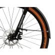 Amortyzowany widelec ze skokiem 100 mm zapewnia wysoką kulturę pracy oraz doskonałe tłumienie wibracji powstających podczas jazdy po nierównej i wyboistej nawierzchni.