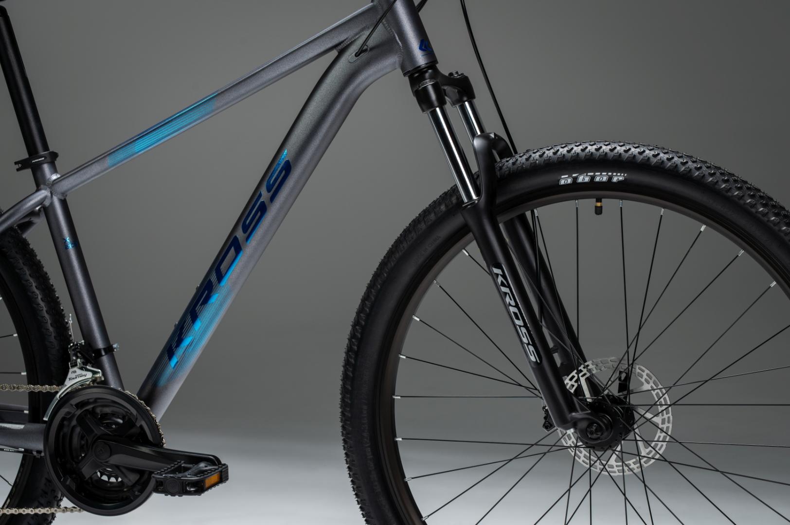 Rama KROSS Hexagon X200 została wykonana z aluminium 6061. Ten specjalny stop aluminium sprawia, że rower jest sztywny i odporny na złamania. Jednocześnie, jest to stosunkowo lekki materiał, który może zaskoczyć niejednego rowerzystę swoimi właściwościami. Rama jest malowana proszkowo, co przekłada się na trwałość malowania oraz odporność lakieru na uszkodzenia mechaniczne.