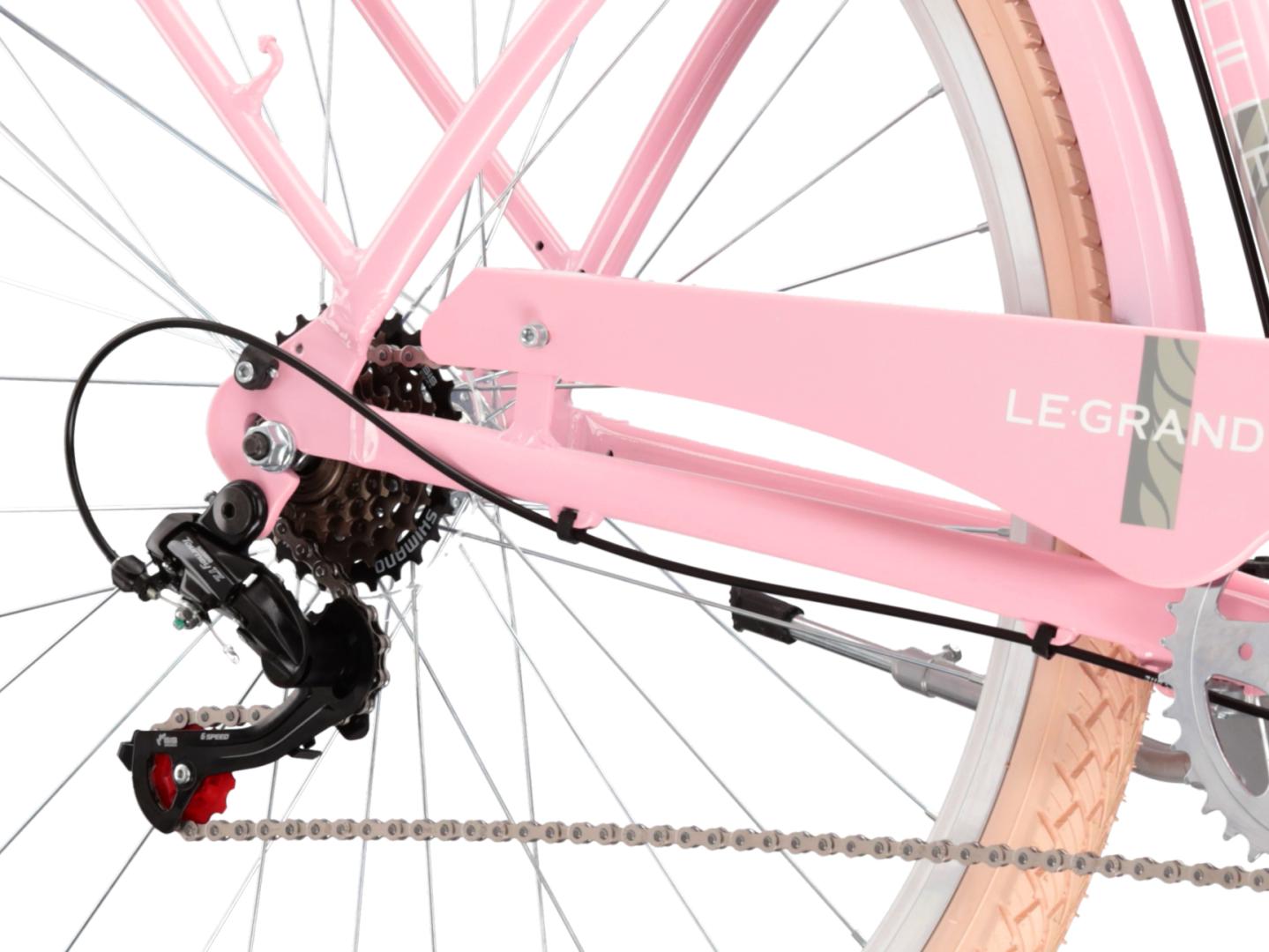 Rama Le Grand Lille 2 została wykonana z aluminium 6061. Ten specjalny stop aluminium sprawia, że rower jest sztywny i odporny na złamania. Jednocześnie, jest to stosunkowo lekki materiał, który może zaskoczyć niejednego rowerzystę swoimi właściwościami. Rama jest malowana proszkowo, co przekłada się na trwałość malowania oraz odporność lakieru na uszkodzenia mechaniczne.