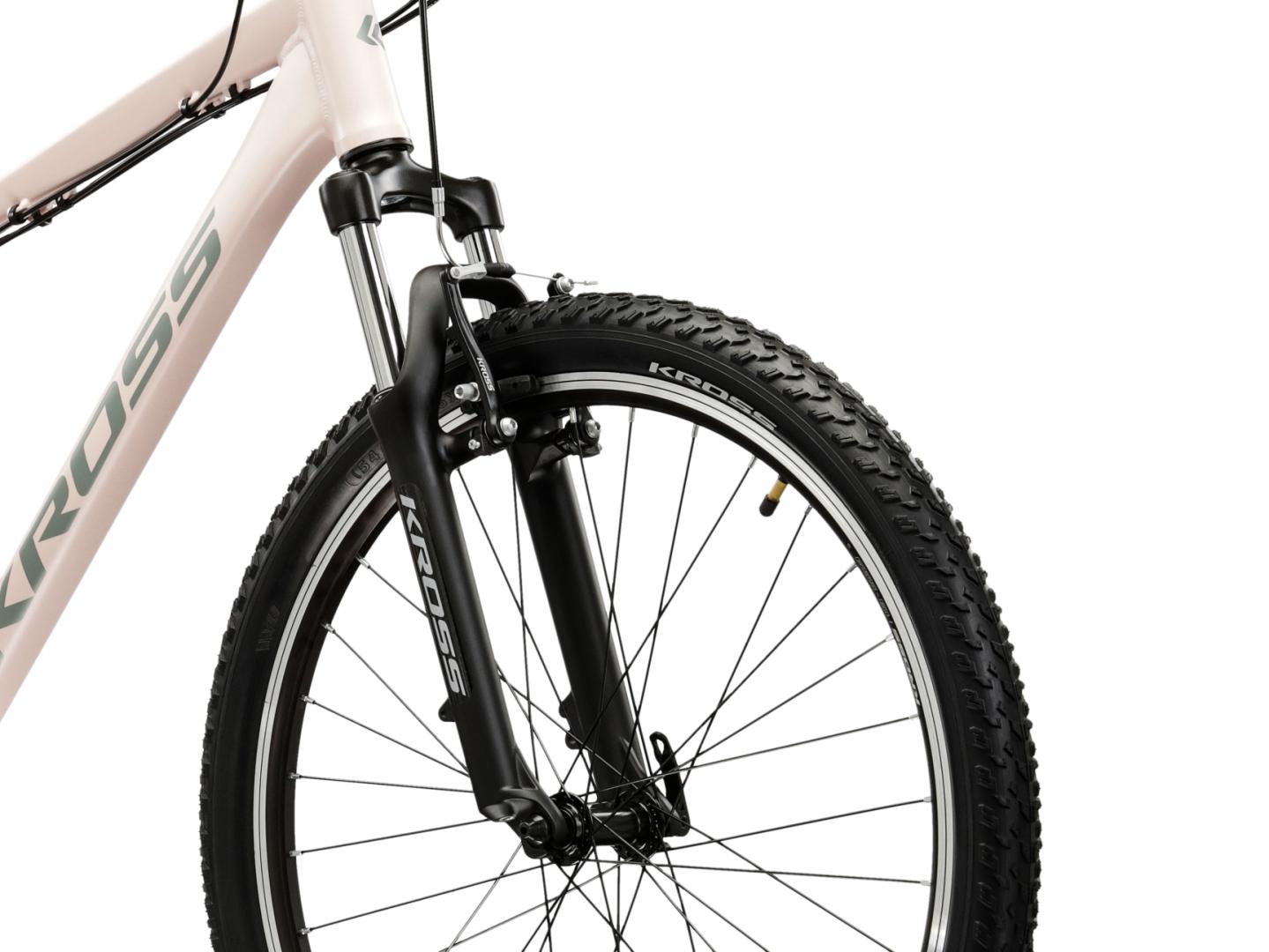 KROSS Lea 1.0 to rower MTB zaprojektowany z myślą o kobietach, które szukają roweru do użytkowania na co dzień, zarówno na dojazy do pracy czy szkoły, ale także na wycieczki do lasu. Aluminiowa rama jest lekka i wytrzymała, a amortyzowany widelec gwarantuje komfort, nawet na bardziej wymagających szlakach. Napęd Shimano w systemie 3x7 zapewnia łatwą i precyzyjną zmianę biegów, a hamulce v-brake dają pełną kontrolę nad prędkością. KROSS Lea 1.0 to idealny wybór dla aktywnych kobiet, które cenią sobie wygodę, kontrolę i wszechstronność niezależnie od wybranej trasy.