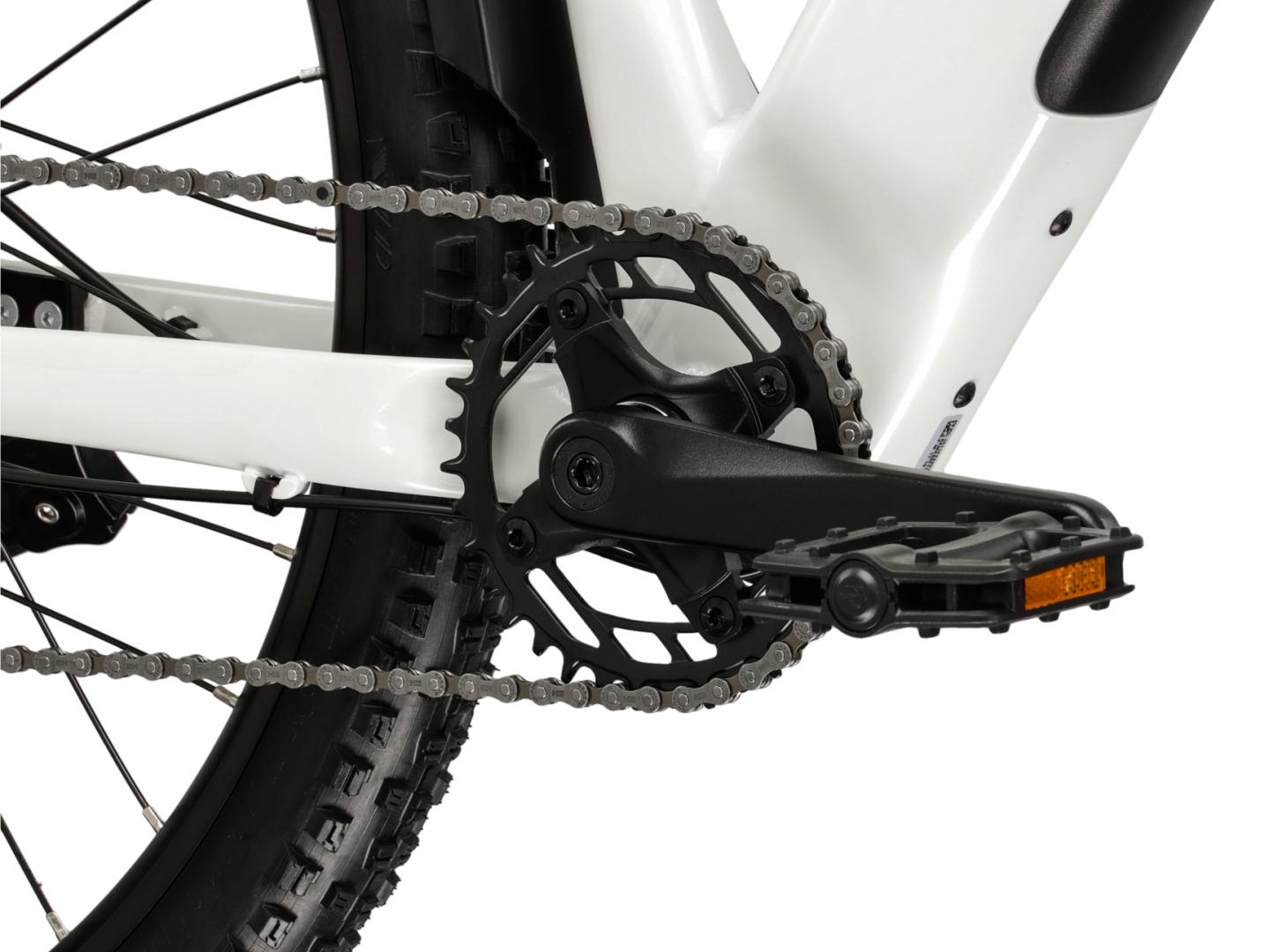 Amortyzowany widelec SR Suntour ze skokiem 100 mm zapewnia wysoką kulturę pracy oraz doskonałe tłumienie wibracji powstających podczas jazdy po nierównej i wyboistej nawierzchni.