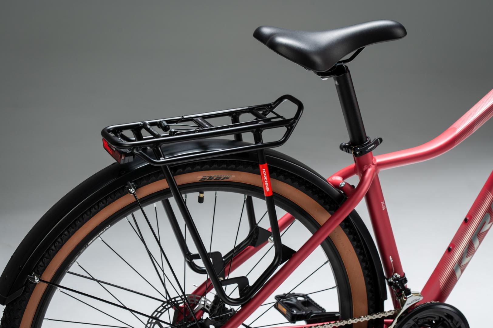 Wersja EQ(equipped) naszego roweru KROSS Lea X200 EQ została dodatkowo wyposażona w przydatne akcesoria. Zintegrowane z rowerem oświetlenie ułatwi jazdę po zmroku, a bagażnik umożliwi przewożenie niezbędnego ekwipunku, czy też montaż dodatkowych sakw. Do kompletu trafił również system pełnych błotników, który zapewnia doskonałą ochronę przed błotem, a podpórka eliminuje konieczność szukania oparcia dla roweru.