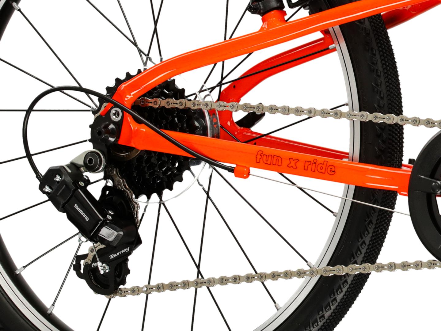 Każdy element wyposażenia KROSS Liftie został dobrany z myślą o bezpieczeństwie i ergonomii odpowiedniej dla dzieci. Napęd w systemie 1x7 umożliwi sprawne pokonywanie podjazdów oraz szybką jazdę po płaskich odcinkach. Tylna przerzutka od Shimano to trwała i sprawdzona konstrukcja, która zapewnia płynną zmianę przełożeń.