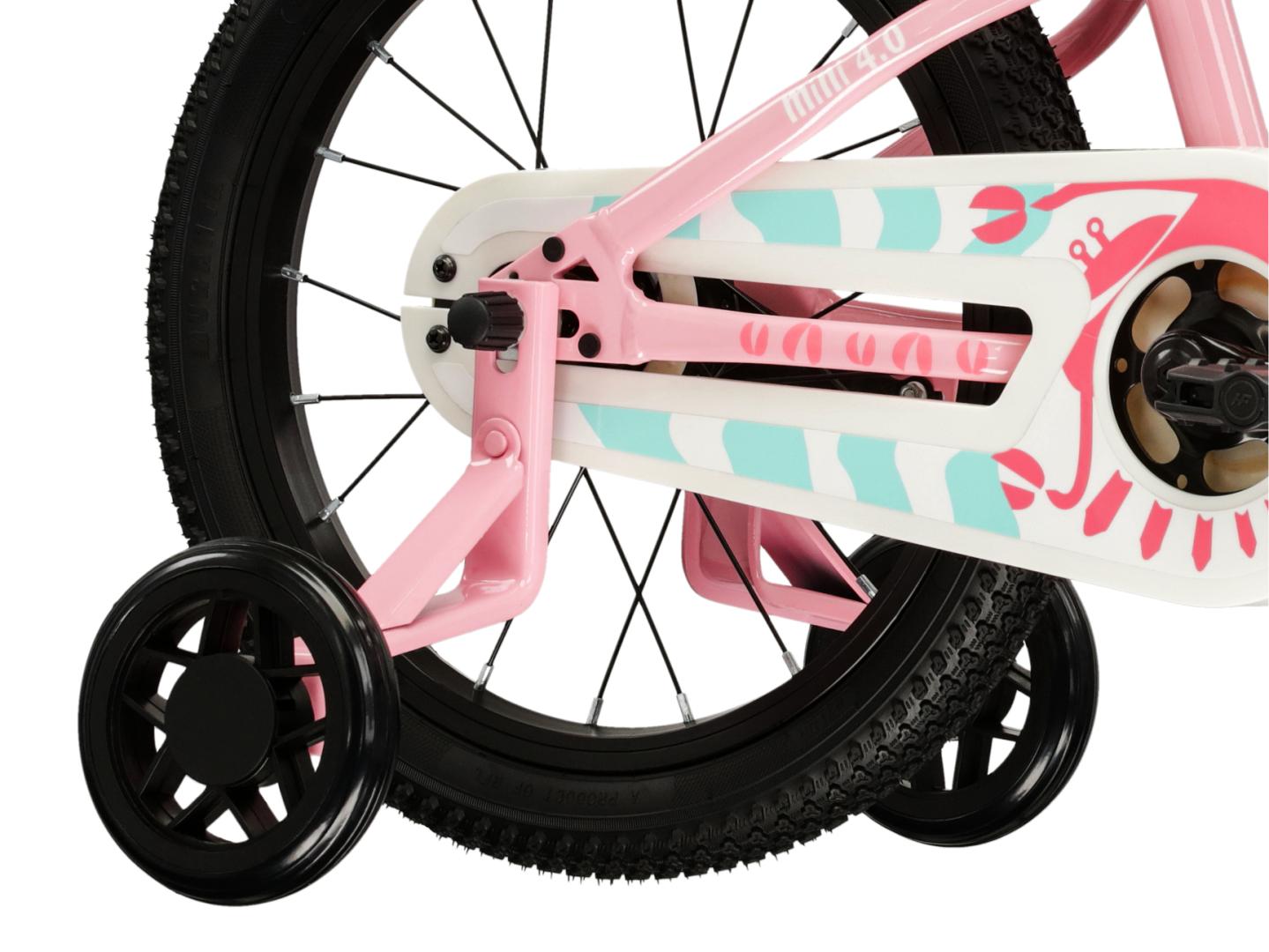 KROSS Mini 4.0 dba o bezpieczeństwo najmłodszych dzięki osłonie, która uniemożliwia dostęp do łańcucha i korby, chroniąc przed przypadkowymi urazami. Dodatkowo rower jest wyposażony w zdejmowane boczne kółka, które ułatwiają naukę jazdy i pozwalają na stopniowe opanowanie równowagi.