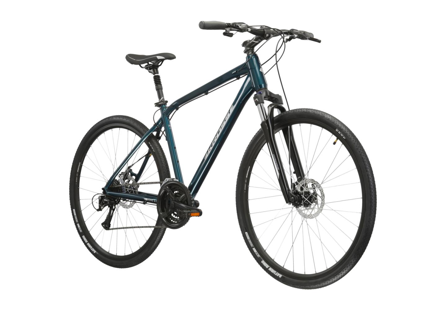 KROSS Move 2.0 to rower crossowy stworzony dla osób aktywnych, które pragną połączyć jazdę miejską z wyprawami po leśnych ścieżkach. Lekka, aluminiowa rama oraz amortyzowany widelec SR Suntour zapewniają komfort jazdy zarówno po asfalcie, jak i w trudniejszym terenie. Napęd Shimano w systemie 3x8 umożliwia płynne dostosowanie przełożeń do każdej trasy, a mechaniczne hamulce tarczowe gwarantują bezpieczeństwo i kontrolę. KROSS Move 2.0 to idealny wybór zarówno do pokonywania długich turystycznych tras, jak i do sprawnego poruszania się podczas codziennych dojazdów do pracy i szkoły.