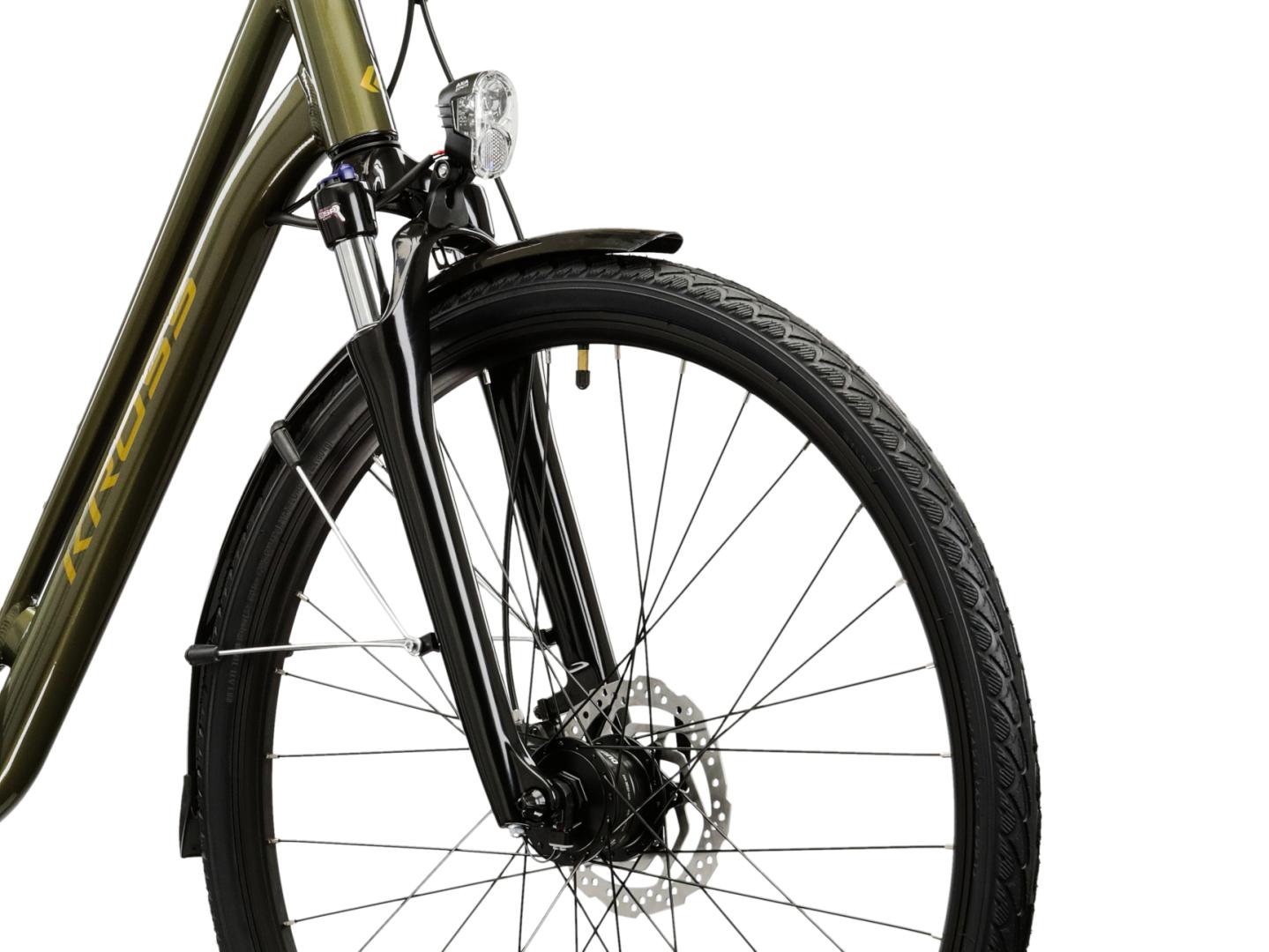 Amortyzowany widelec SR Suntour ze skokiem 50 mm sprawi, że bez problemu dojedziesz do miejsca docelowego bez martwienia się o krawężniki czy kostkę brukową. Natomiast w trakcie wypadów za miasto, możliwa będzie jazda bez obaw o kamienie czy korzenie.