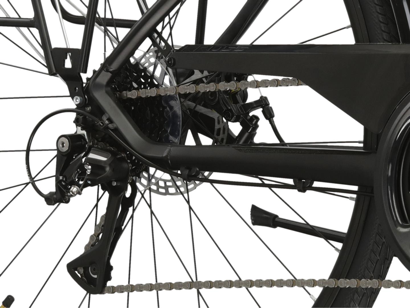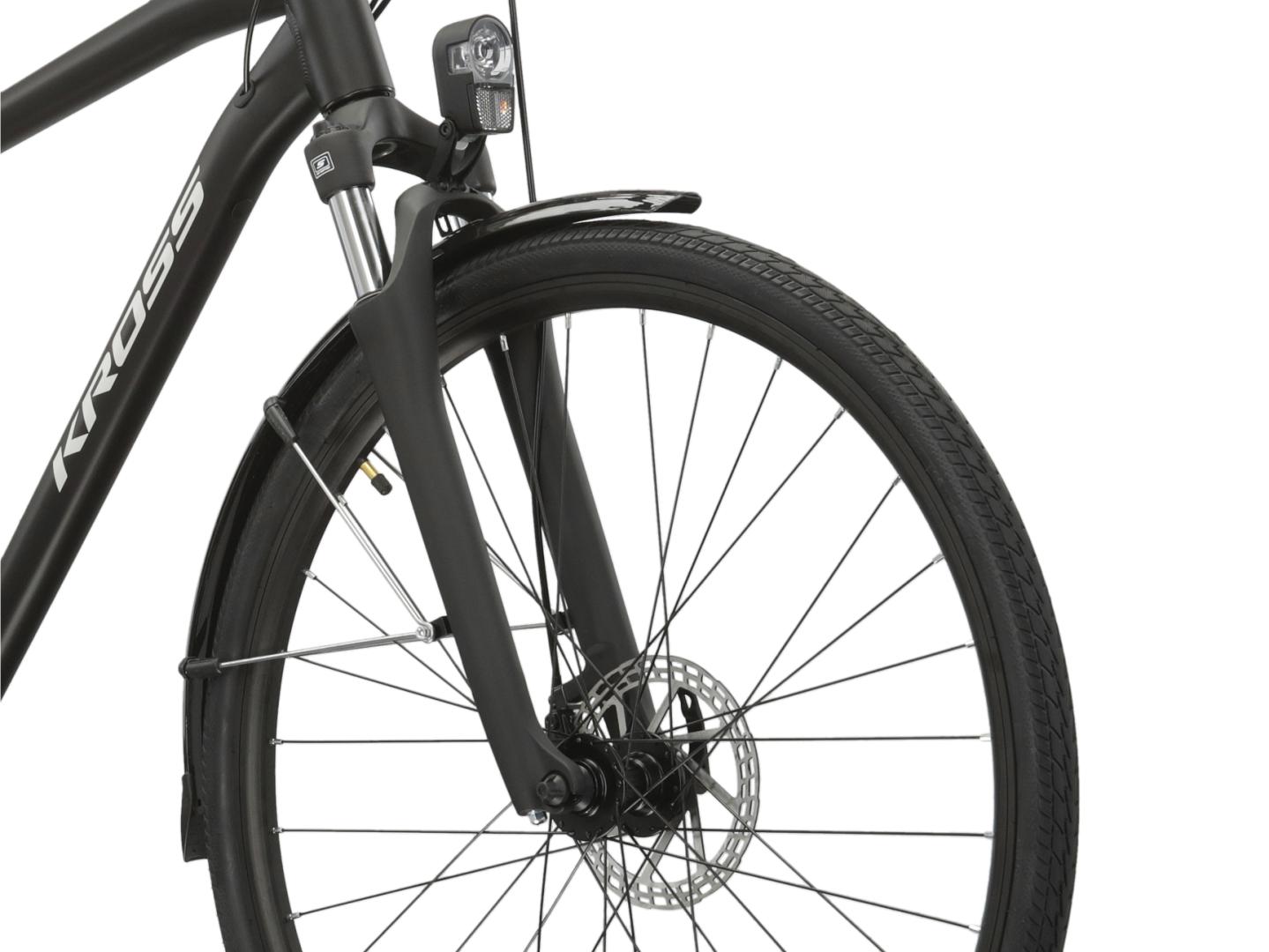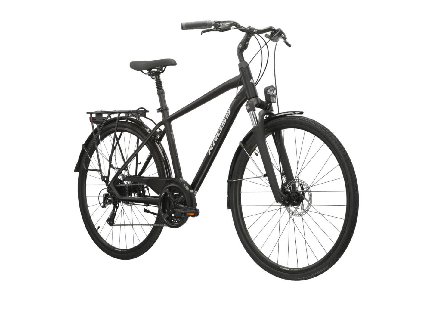 KROSS Trans 3.0 to rower turystyczny łączący cechy przydatne podczas rekreacyjnych wypraw, jak i codziennego zastosowania. Lekka, aluminiowa rama oraz amortyzowany widelec SR Suntour zapewniają komfort jazdy zarówno po asfalcie, jak i w trudniejszym terenie. Napęd Shimano w systemie 3x7 umożliwia płynne dostosowanie przełożeń do każdej trasy, a mechaniczne hamulce tarczowe gwarantują bezpieczeństwo i kontrolę. KROSS Trans 3.0 został zaprojektowany, aby zapewnić jak największy poziom komfortu zarówno podczas wypraw za miasto, jak i podczas dojazdów do pracy.