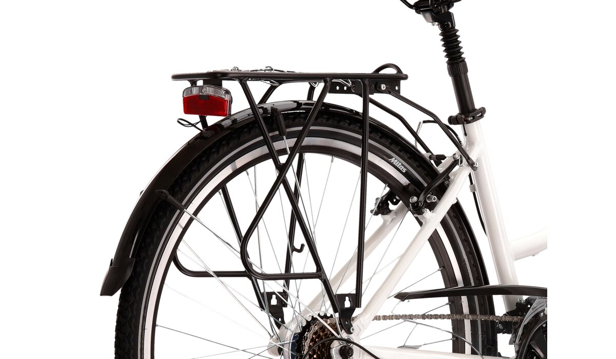 W rowerze trekkingowym nie mogło zabraknąć solidnego i stabilnego bagażnika. Umożliwia on przewożenie niezbędnego ekwipunku, a także nie będzie problemem montaż na nim dodatkowych sakw. Do kompletu trafił również system pełnych błotników, który zapewnia doskonałą ochronę przed błotem.