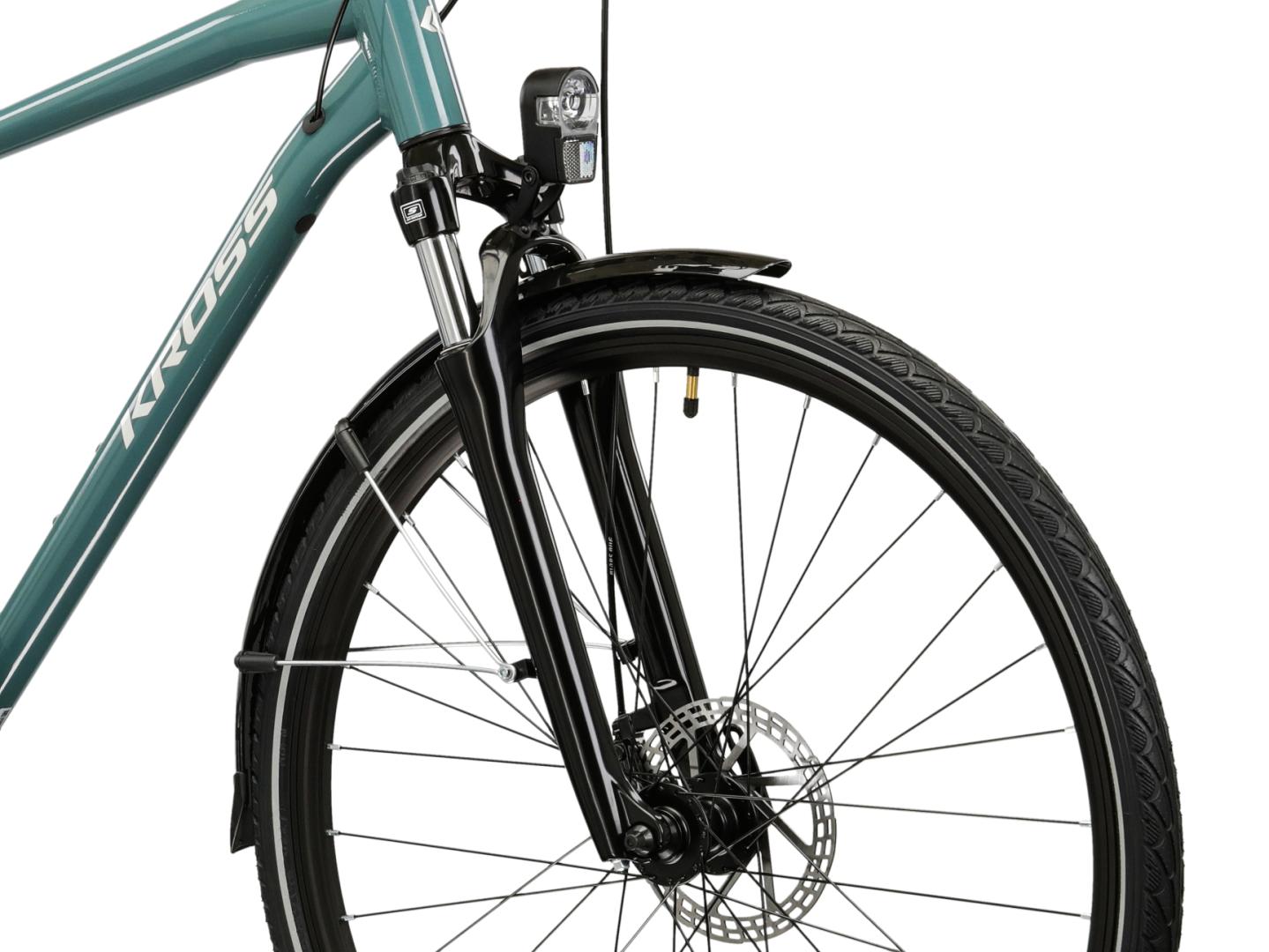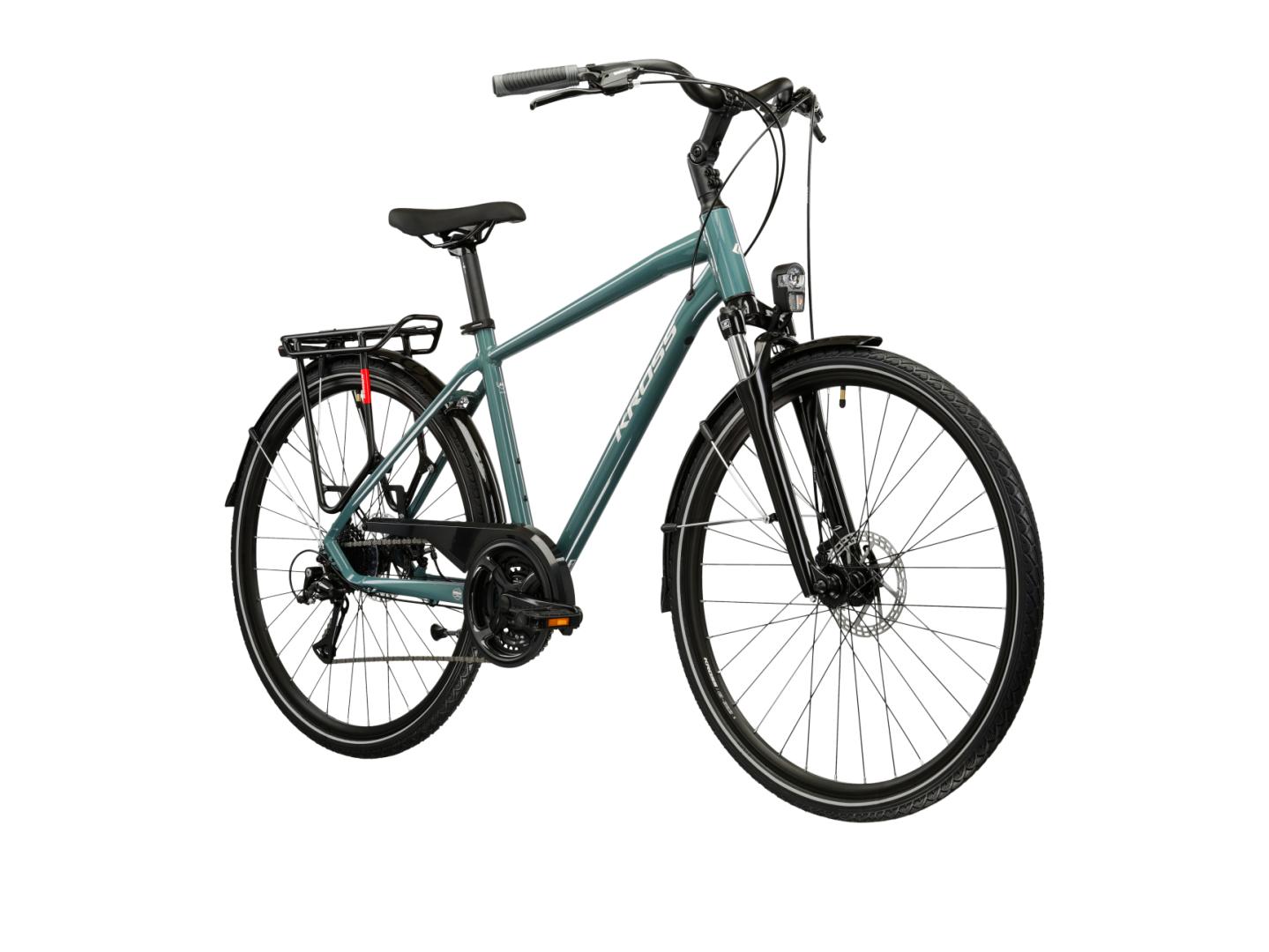 KROSS Trans 3.0 to rower turystyczny łączący cechy przydatne podczas rekreacyjnych wypraw, jak i codziennego zastosowania. Lekka, aluminiowa rama oraz amortyzowany widelec SR Suntour zapewniają komfort jazdy zarówno po asfalcie, jak i w trudniejszym terenie. Napęd Shimano w systemie 3x8 umożliwia płynne dostosowanie przełożeń do każdej trasy, a mechaniczne hamulce tarczowe gwarantują bezpieczeństwo i kontrolę. KROSS Trans 3.0 został zaprojektowany, aby zapewnić jak największy poziom komfortu zarówno podczas wypraw za miasto, jak i podczas dojazdów do pracy.