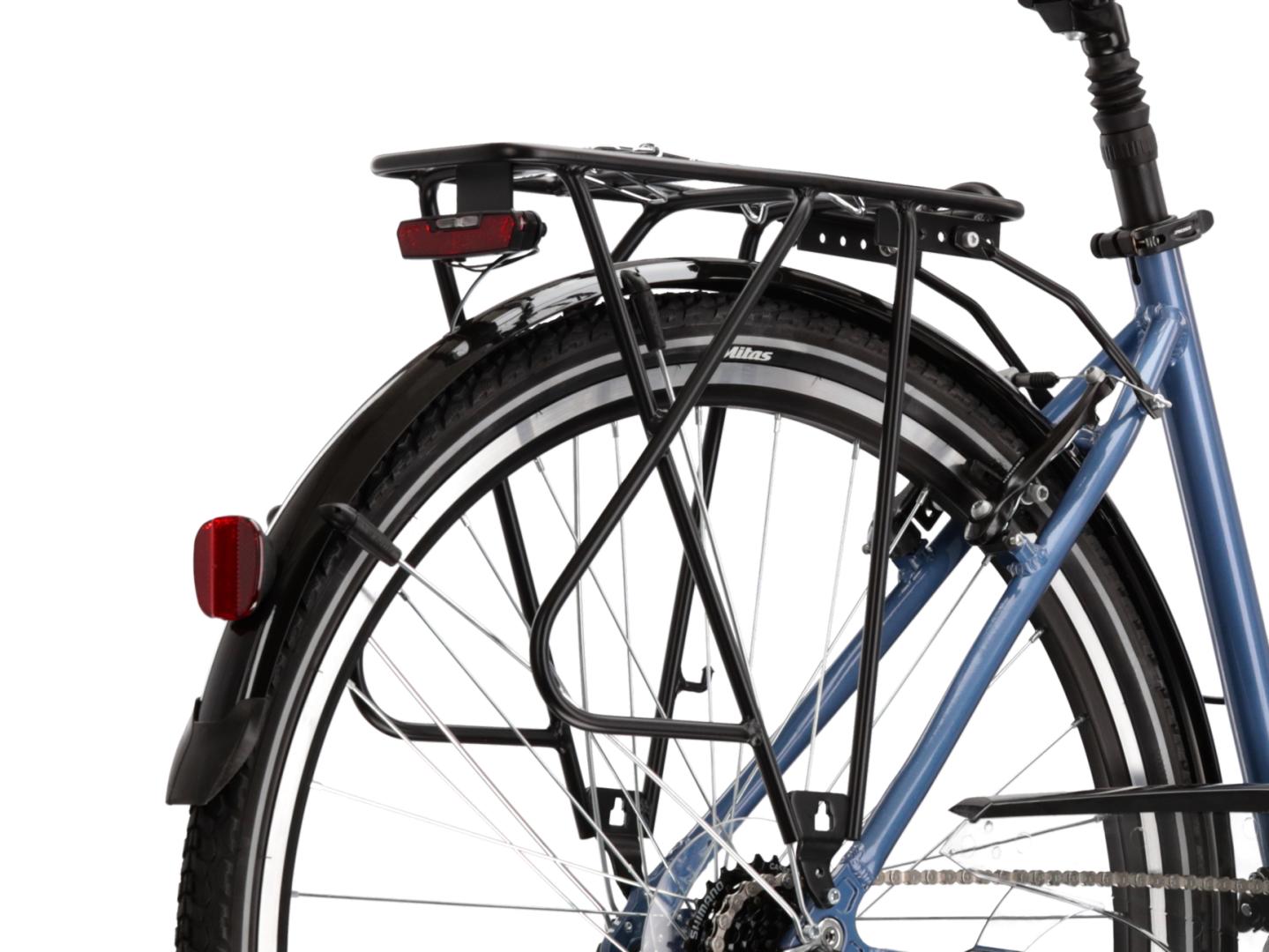 W rowerze trekkingowym nie mogło zabraknąć solidnego i stabilnego bagażnika. Umożliwia on przewożenie niezbędnego ekwipunku, a także nie będzie problemem montaż na nim dodatkowych sakw. Do kompletu trafił również system pełnych błotników, który zapewnia doskonałą ochronę przed błotem.