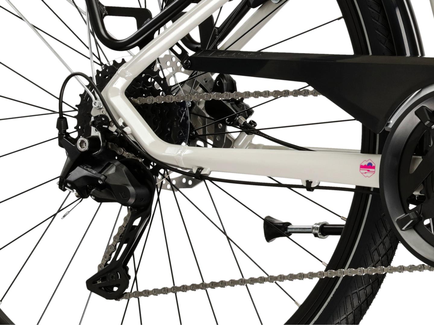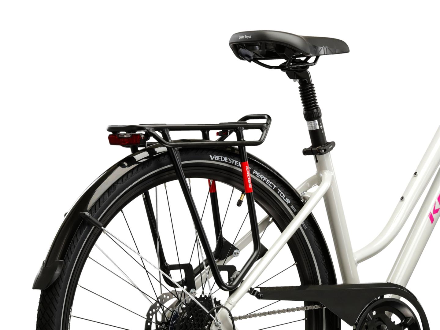 Zintegrowane z rowerem oświetlenie ułatwi jazdę po zmroku, a wysokiej jakości siodełko Selle Royal zachwyci Cię komfortem, jaki zaoferuje Ci podczas pokonywania długich tras. Dodatkowo, siodło zostało osadzone na amortyzowanej sztycy, co niweluje drgania powstające podczas jazdy po nierównościach.