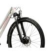 Amortyzowany widelec SR Suntour ze skokiem 63 mm sprawi, że bez problemu dojedziesz do miejsca docelowego bez martwienia się o krawężniki czy kostkę brukową. W lesie natomiast możliwa będzie jazda bez obaw o kamienie czy korzenie. Blokada znajdująca się w koronie widelca umożliwi łatwiejsze oraz skuteczniejsze pokonywanie płaskich odcinków trasy.