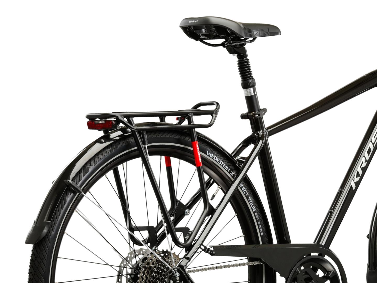 W rowerze trekkingowym nie mogło zabraknąć solidnego i stabilnego bagażnika. Umożliwia on przewożenie niezbędnego ekwipunku, a także nie będzie problemem montaż na nim dodatkowych sakw. Do kompletu trafił również system pełnych błotników, który zapewnia doskonałą ochronę przed błotem.