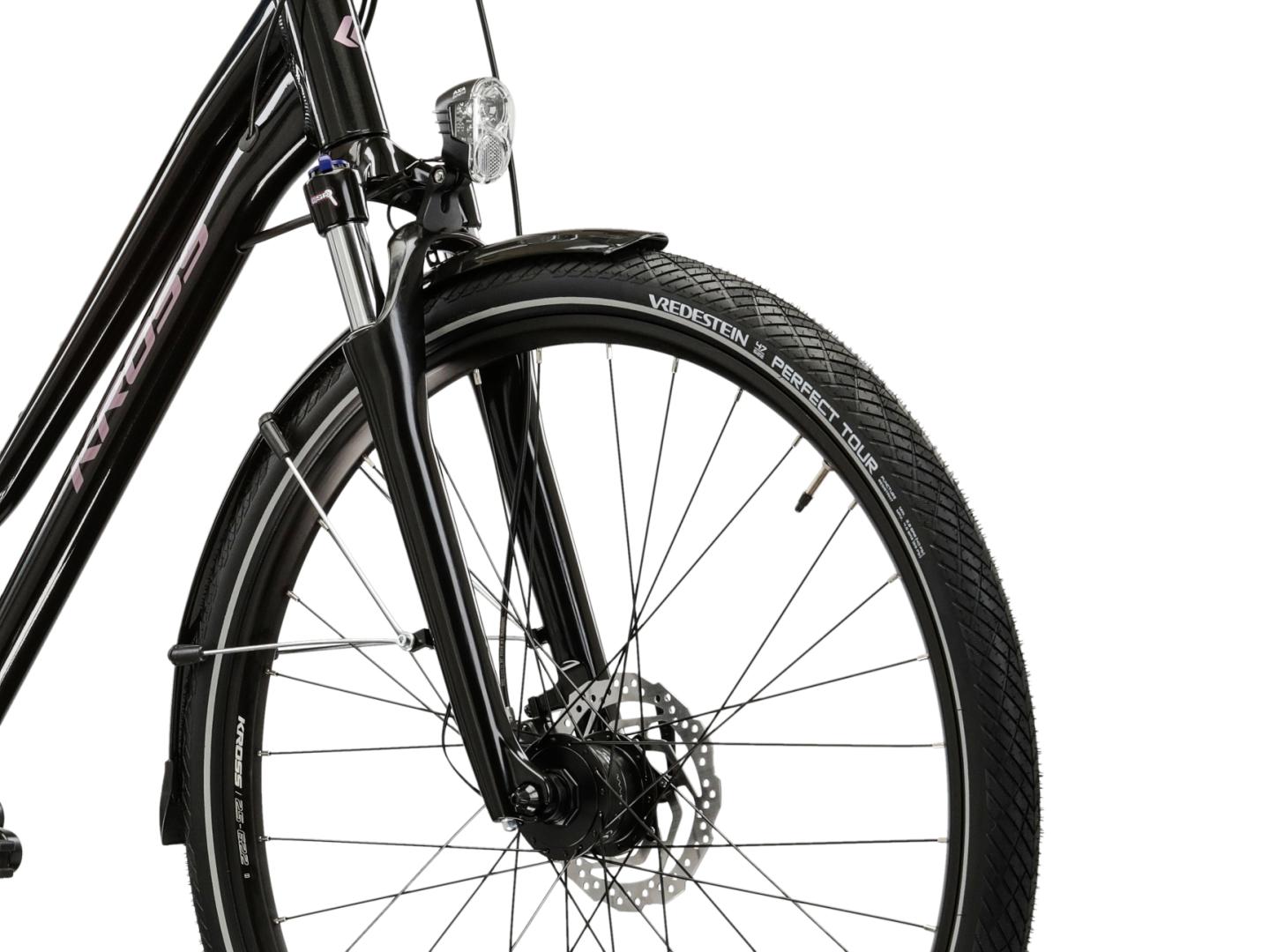 KROSS Trans 7.0 to rower turystyczny łączący cechy przydatne podczas rekreacyjnych wypraw, jak i codziennego zastosowania. Lekka, aluminiowa rama oraz amortyzowany widelec SR Suntour zapewniają komfort jazdy zarówno po asfalcie, jak i w trudniejszym terenie. Napęd Shimano Cues w systemie 2x10 umożliwia płynne dostosowanie przełożeń do każdej trasy, a hydrauliczne hamulce tarczowe gwarantują bezpieczeństwo i kontrolę. KROSS Trans 7.0 został zaprojektowany, aby zapewnić jak największy poziom komfortu zarówno podczas wypraw za miasto, jak i podczas dojazdów do pracy.