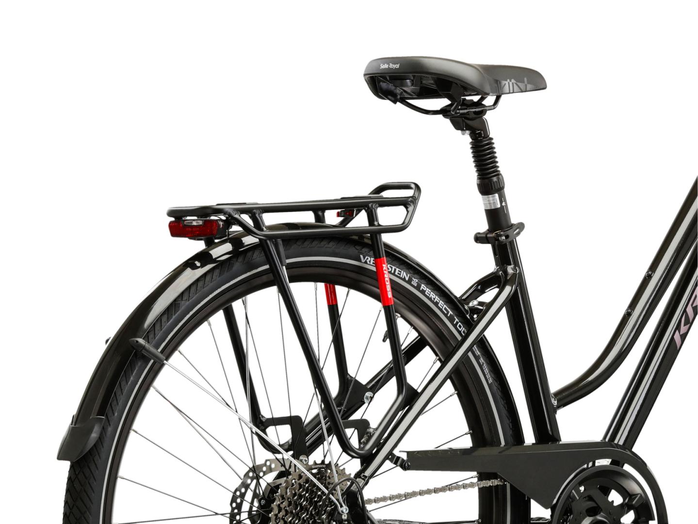 W rowerze trekkingowym nie mogło zabraknąć solidnego i stabilnego bagażnika. Umożliwia on przewożenie niezbędnego ekwipunku, a także nie będzie problemem montaż na nim dodatkowych sakw. Do kompletu trafił również system pełnych błotników, który zapewnia doskonałą ochronę przed błotem.