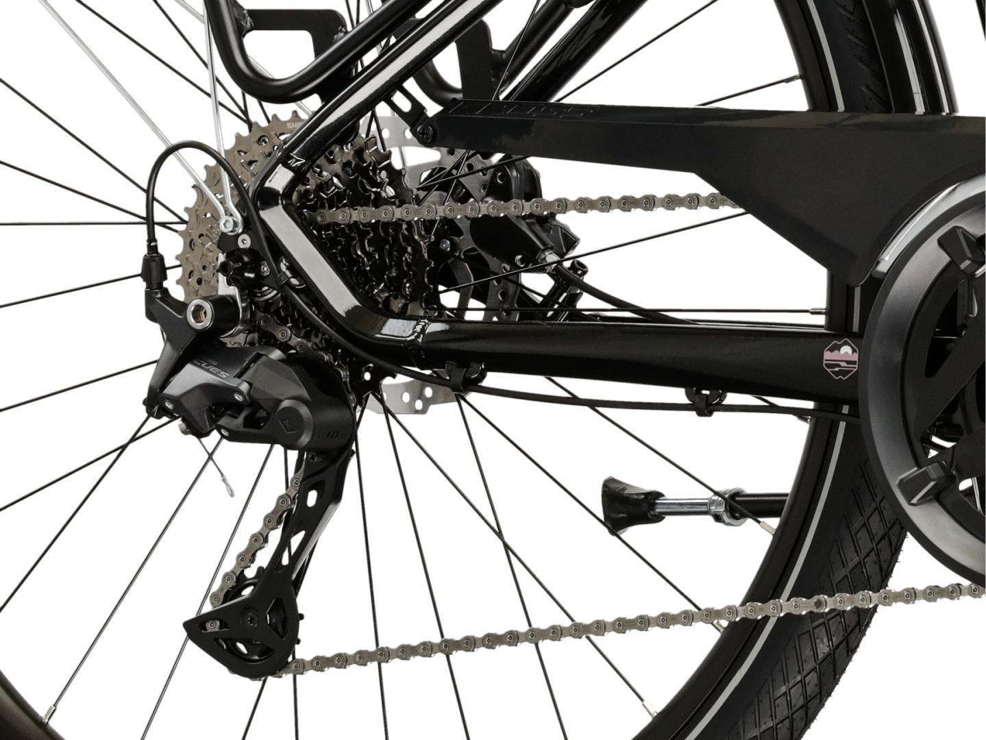 Zintegrowane z rowerem oświetlenie ułatwi jazdę po zmroku, a wysokiej jakości siodełko Selle Royal zachwyci Cię komfortem, jaki zaoferuje Ci podczas pokonywania długich tras. Dodatkowo, siodło zostało osadzone na amortyzowanej sztycy, co niweluje drgania powstające podczas jazdy po nierównościach.