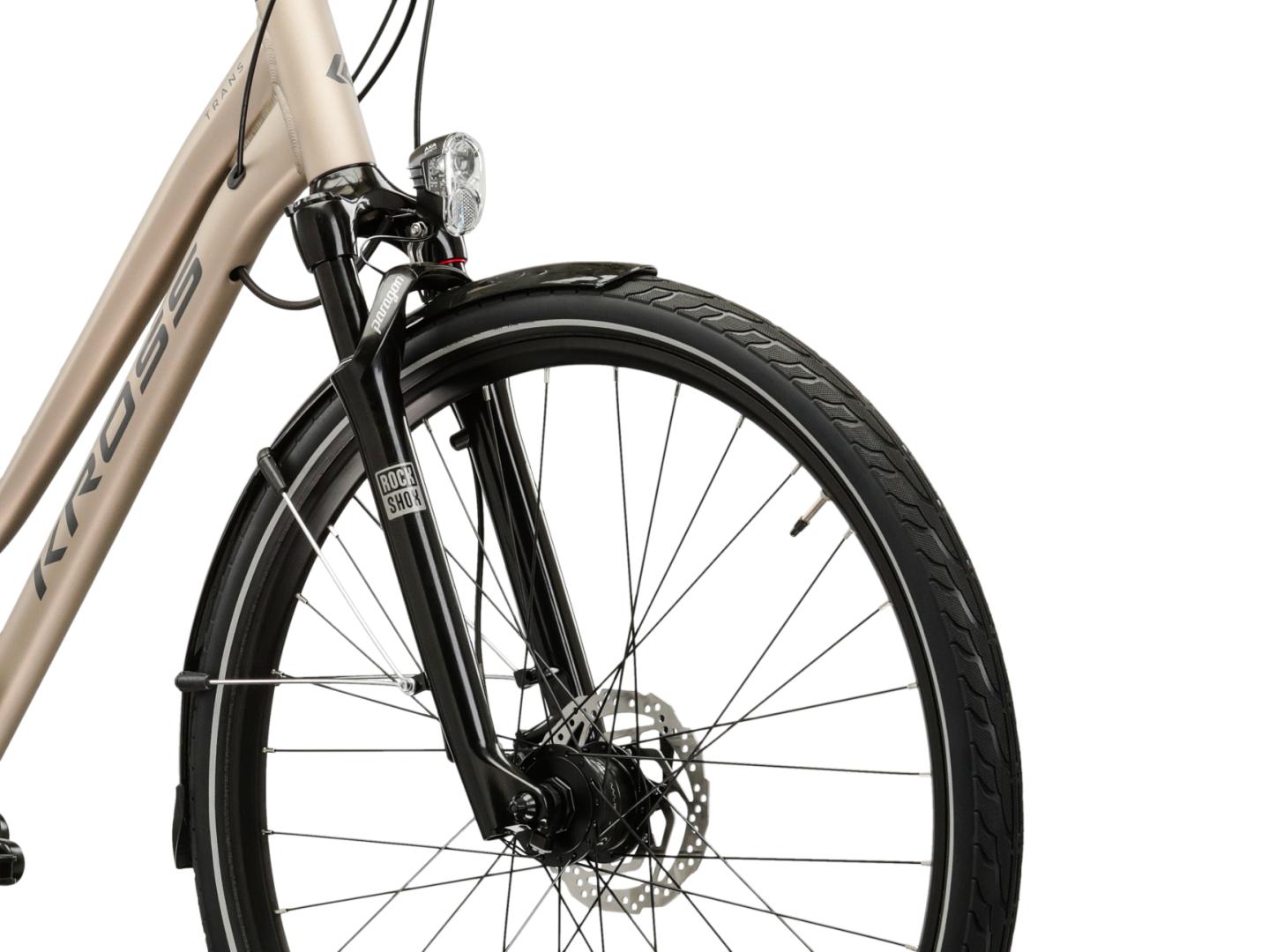 KROSS Trans 7.1 to rower turystyczny łączący cechy przydatne podczas rekreacyjnych wypraw, jak i codziennego zastosowania. Lekka, aluminiowa rama oraz amortyzowany widelec Rock Shox zapewniają komfort jazdy zarówno po asfalcie, jak i w trudniejszym terenie. Napęd Shimano Cues w systemie 2x9 umożliwia płynne dostosowanie przełożeń do każdej trasy, a hydrauliczne hamulce tarczowe gwarantują bezpieczeństwo i kontrolę. KROSS Trans 7.1 został zaprojektowany, aby zapewnić jak największy poziom komfortu zarówno podczas wypraw za miasto, jak i podczas dojazdów do pracy.