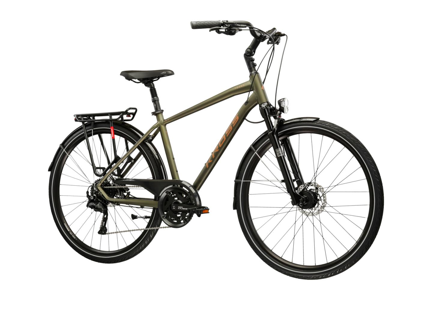 KROSS Trans 7.1 to rower turystyczny łączący cechy przydatne podczas rekreacyjnych wypraw, jak i codziennego zastosowania. Lekka, aluminiowa rama oraz amortyzowany widelec Rock Shox zapewniają komfort jazdy zarówno po asfalcie, jak i w trudniejszym terenie. Napęd Shimano Cues w systemie 2x9 umożliwia płynne dostosowanie przełożeń do każdej trasy, a hydrauliczne hamulce tarczowe gwarantują bezpieczeństwo i kontrolę. KROSS Trans 7.1 został zaprojektowany, aby zapewnić jak największy poziom komfortu zarówno podczas wypraw za miasto, jak i podczas dojazdów do pracy.