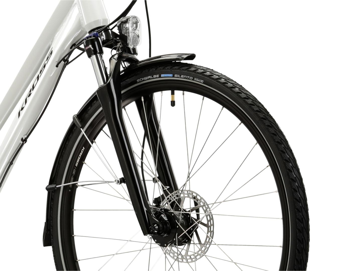 Zintegrowane z rowerem oświetlenie ułatwi jazdę po zmroku, a wysokiej jakości siodełko Selle Royal zachwyci Cię komfortem, jaki zaoferuje Ci podczas pokonywania długich tras. Dodatkowo, siodło zostało osadzone na amortyzowanej sztycy, co niweluje drgania powstające podczas jazdy po nierównościach.