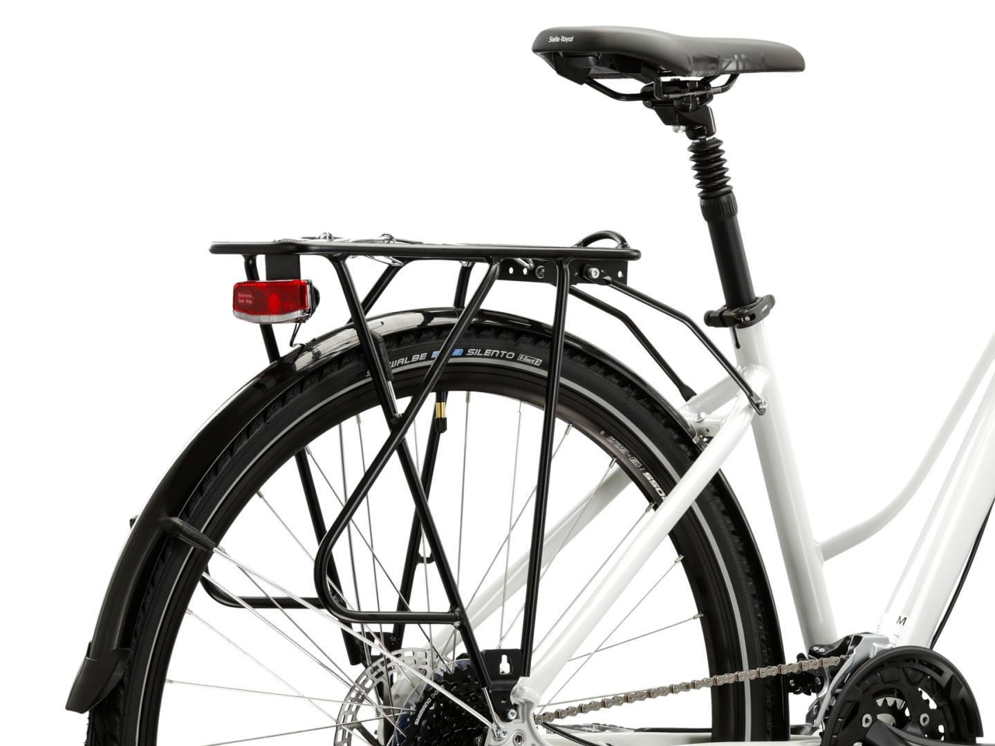 W rowerze trekkingowym nie mogło zabraknąć solidnego i stabilnego bagażnika. Umożliwia on przewożenie niezbędnego ekwipunku, a także nie będzie problemem montaż na nim dodatkowych sakw. Do kompletu trafił również system pełnych błotników, który zapewnia doskonałą ochronę przed błotem.